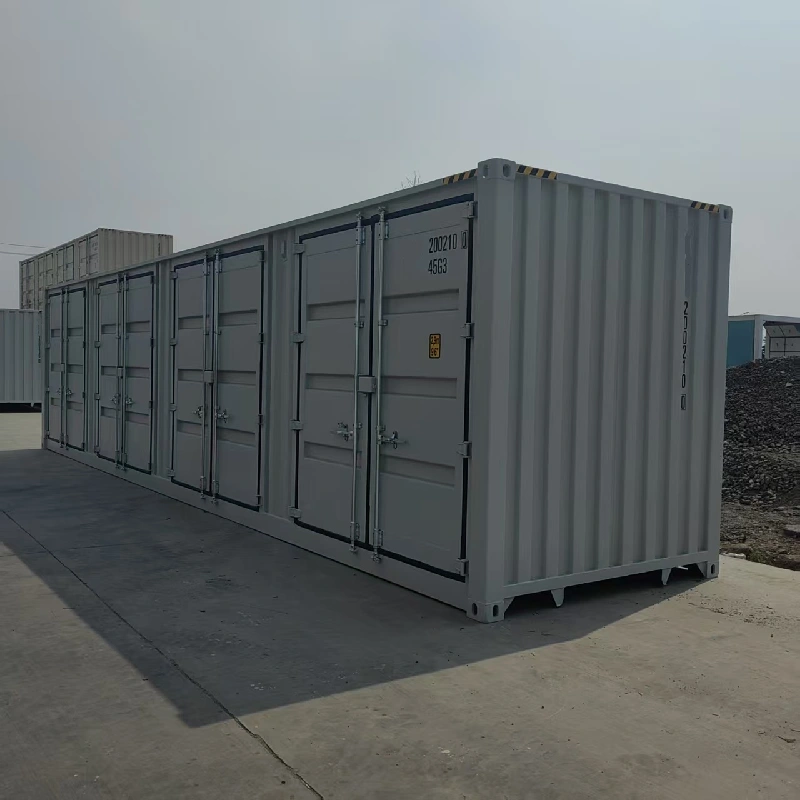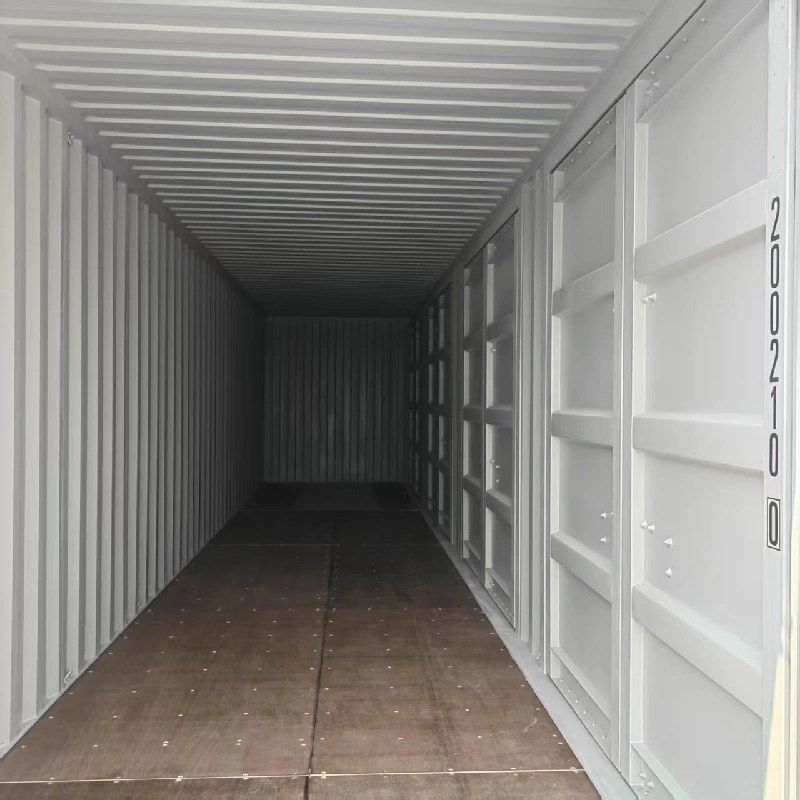 Контейнер з високим вмістом 40 футів з 4 бічними дверима зберігає всі функції та особливості стандартного контейнера високого куба (40 к.с.). Крім того, дизайн, що відкривається, дозволяє швидше завантажувати та вивантажувати товари; Він забезпечує більше перспектив для перевірки товарів всередині контейнера; Якщо обладнаний деякими запасними аксесуарами, такими як набори розділів, його можна легко перетворити на контейнер з різними функціональними зонами. Бічні двері також знімні, і додавши інші запасні аксесуари, такі як скляні двері, вікна та перила, її можна легше перетворити в будинок.
